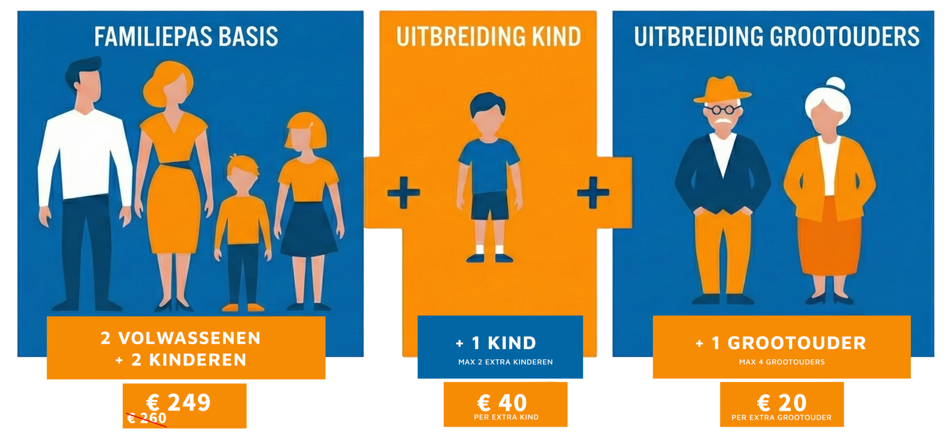 Het is mogelijk om t/m 2 extra kinderen (t/m 17 jaar) uit hetzelfde huishouden toe te voegen, conform dezelfde voorwaarden, tegen een meerprijs van €40 per kind.