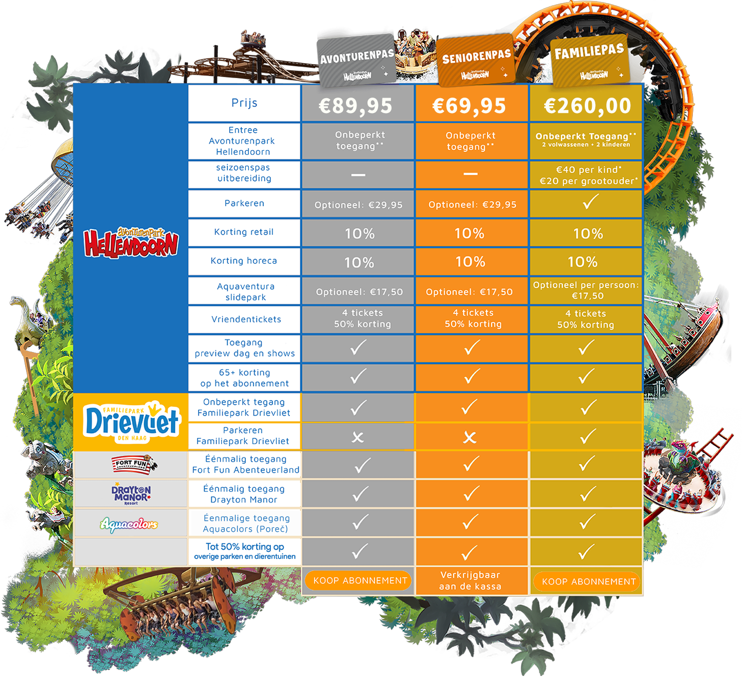 Krijg alle openingsdagen toegang tot Avonturenpark Hellendoorn met een platinum en familie abonnement. Bij het platinum en familie abonnement krijg je zelfs onbeperkt toegang tot Familiepark Drievliet.,